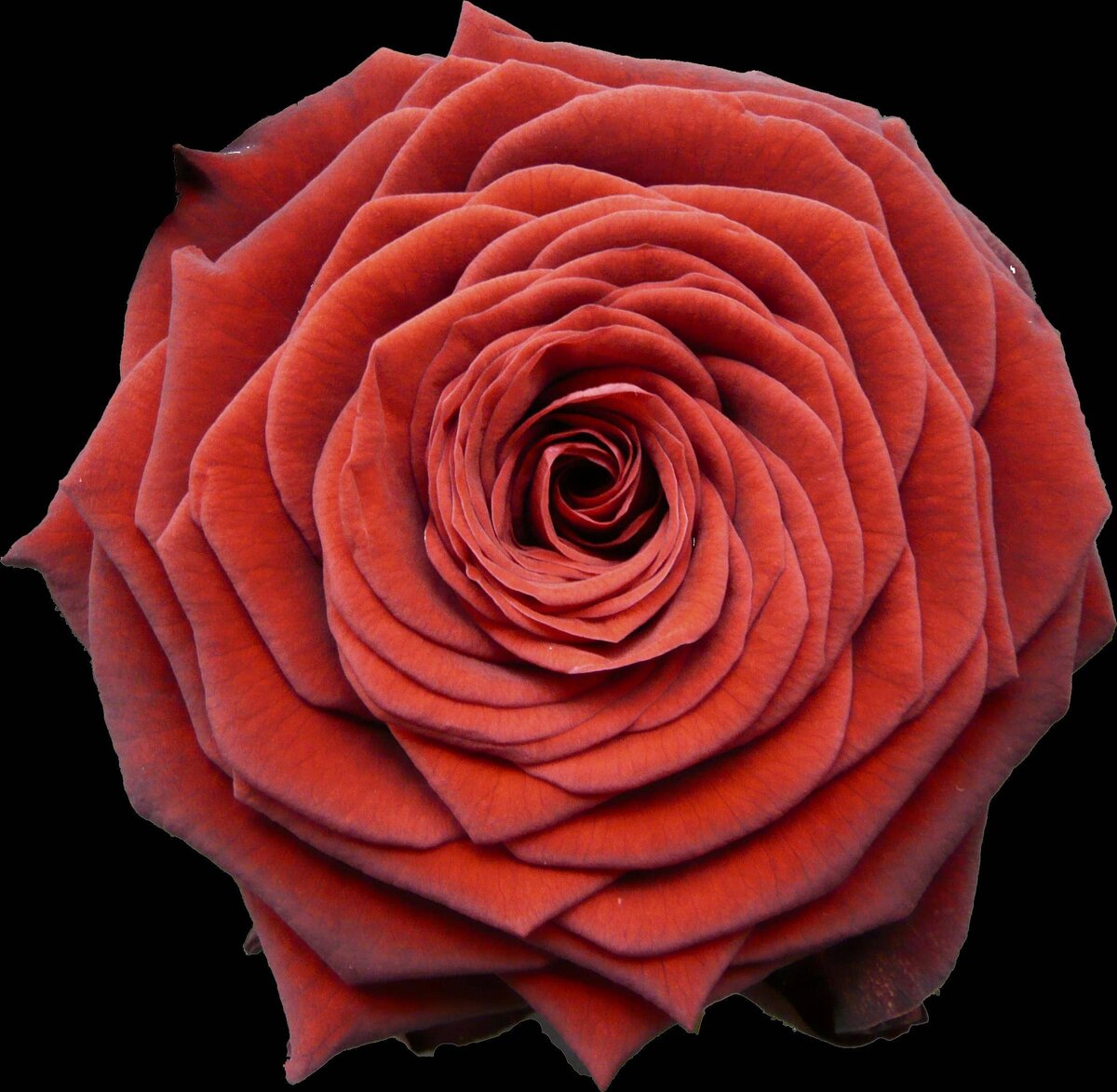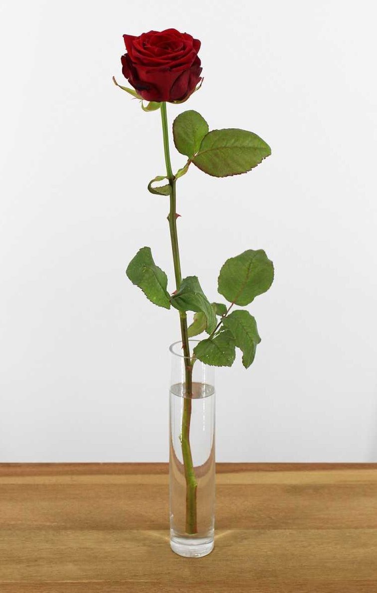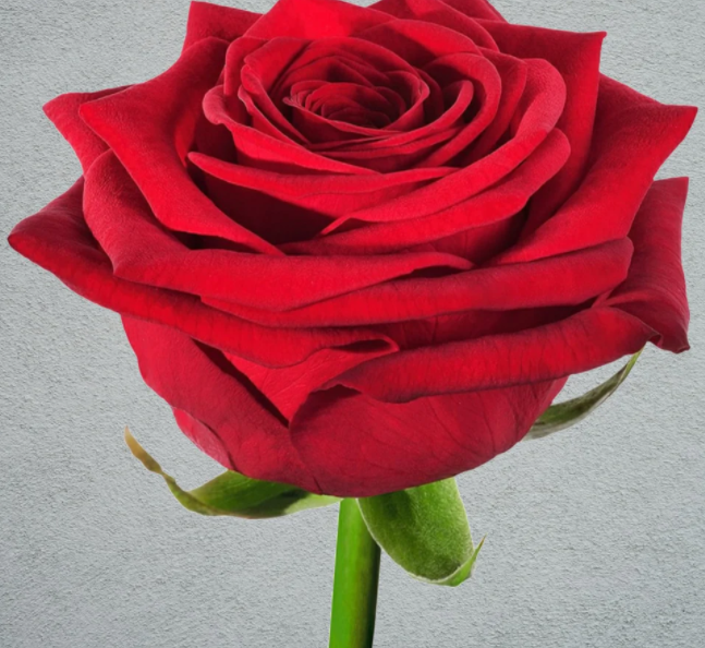 Цвет розы — глубокий и яркий красный с нежным, бархатистым оттенком, который в солнечную погоду темнеет до бордового. И при недостатке света окраска лепестков также уходит в более темный спектр красного цвета.